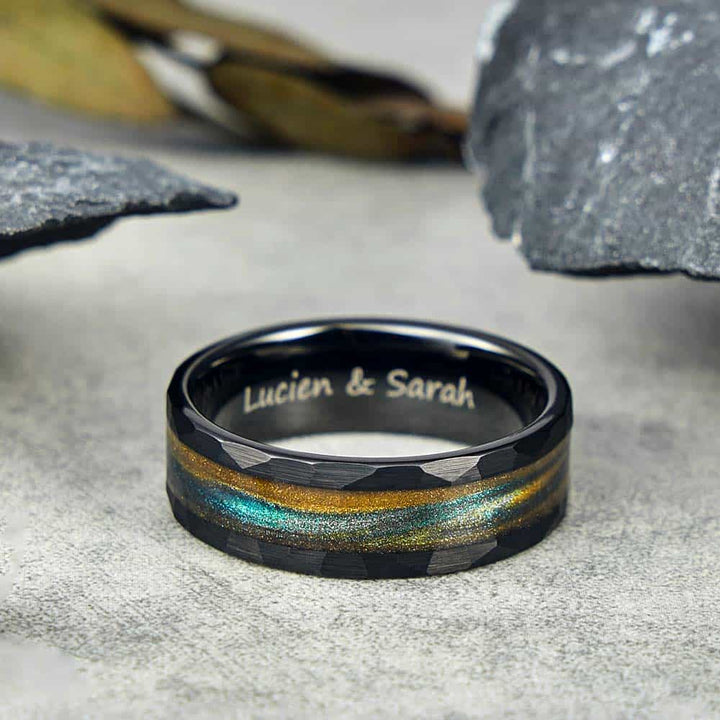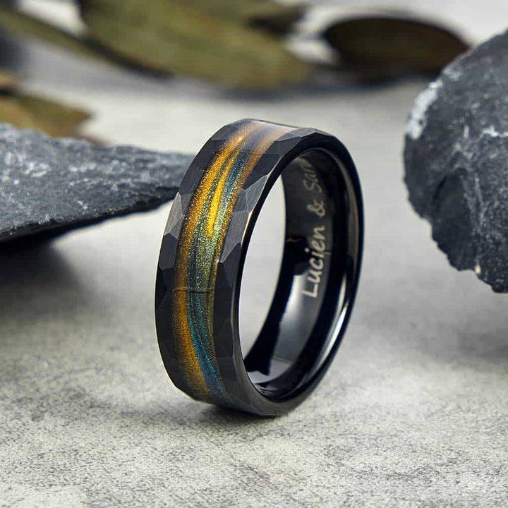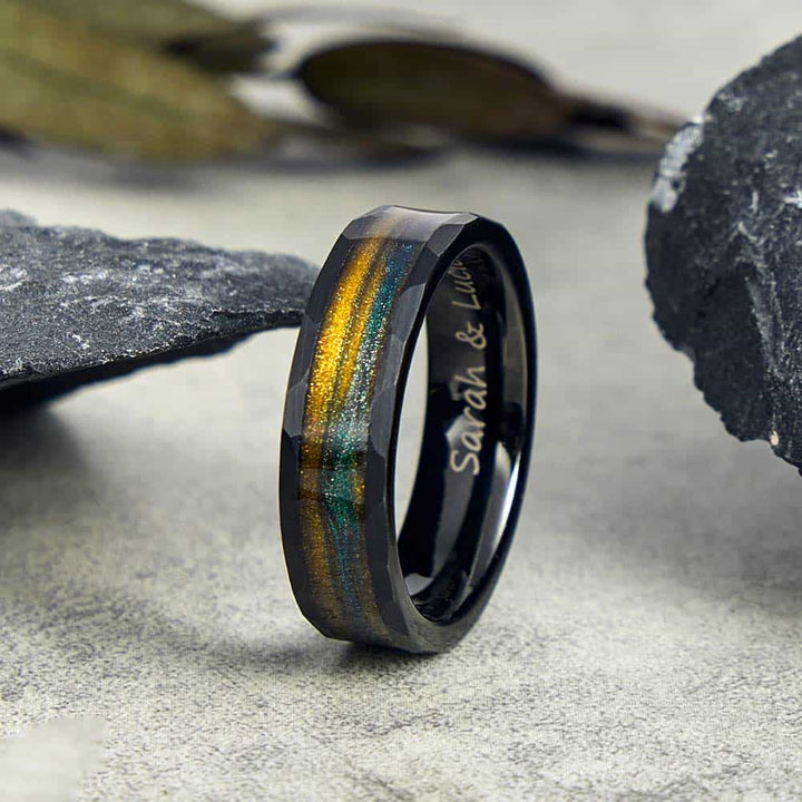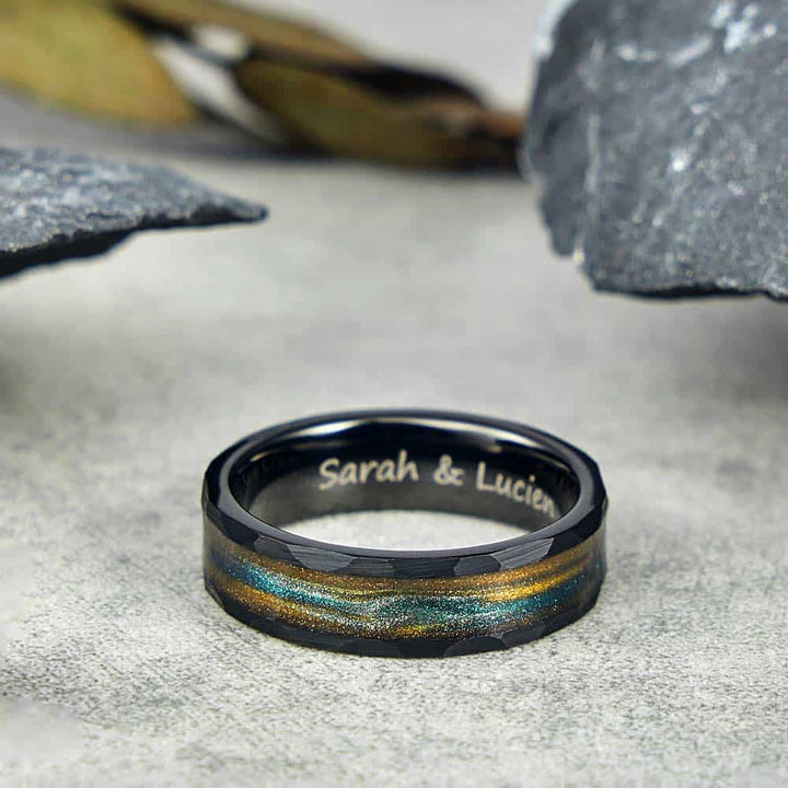 Zwarte Facet Wolfraam Ring met Drijfzand - Sterrivier