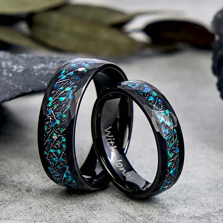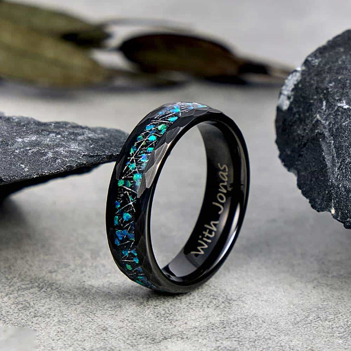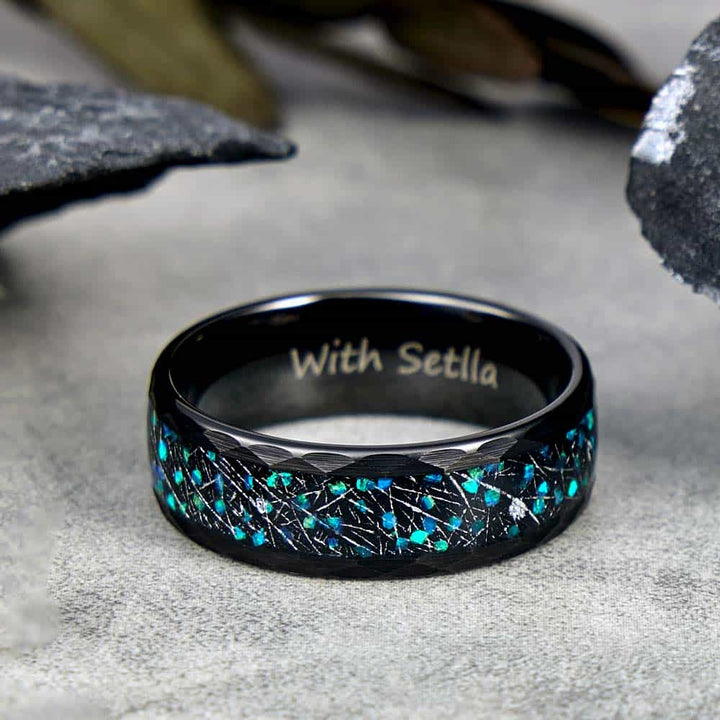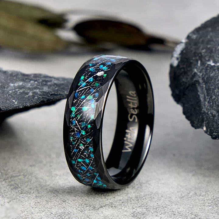 Facet Wolfraam Ring Zwart Groen - Sterren Val