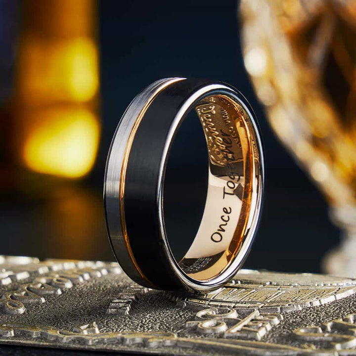 Driekleurige Geborstelde Wolfraam Ring - Eer