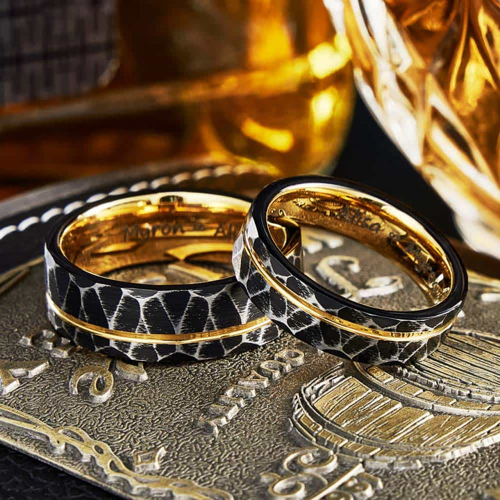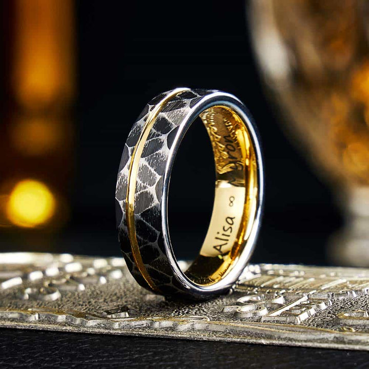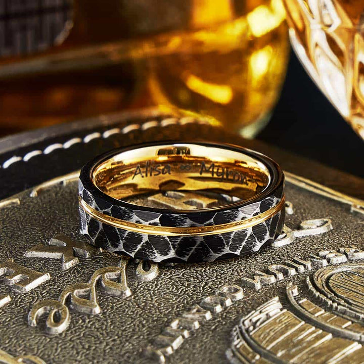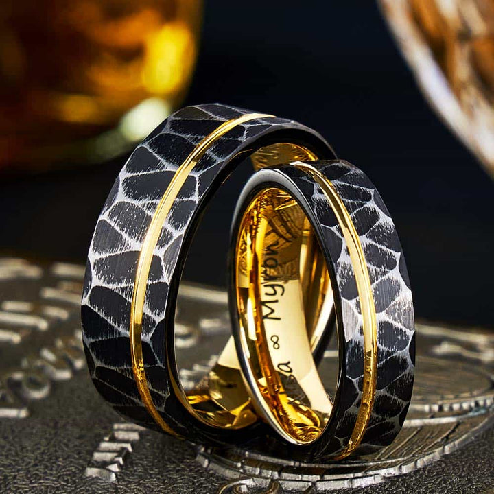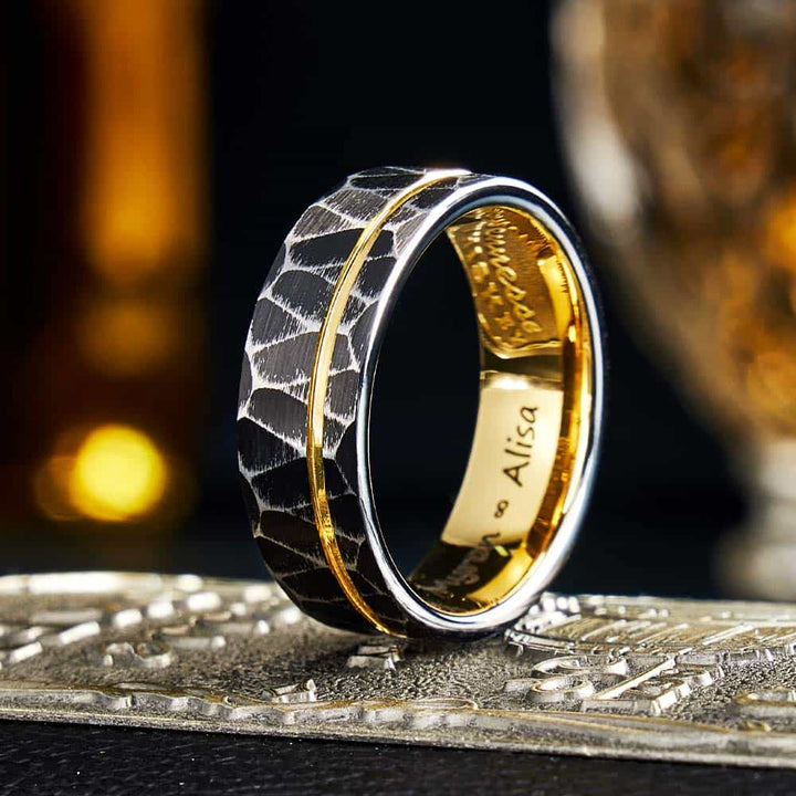 Gehamerde Wolfraam Carbide Ring Goud - Troon