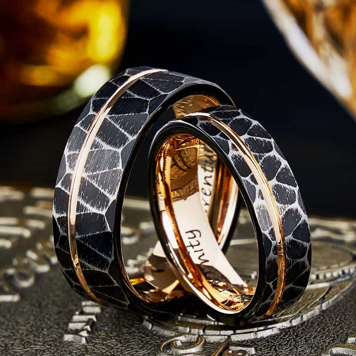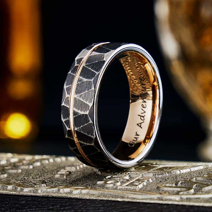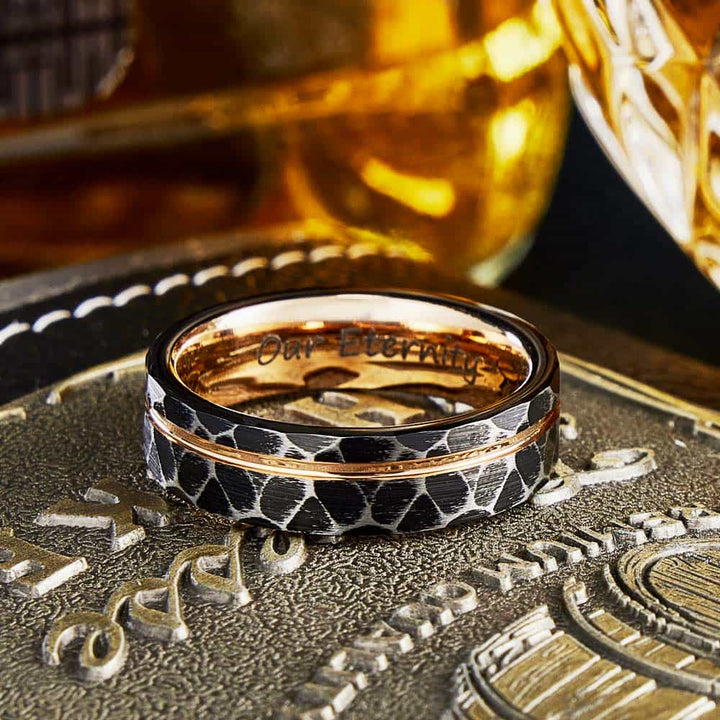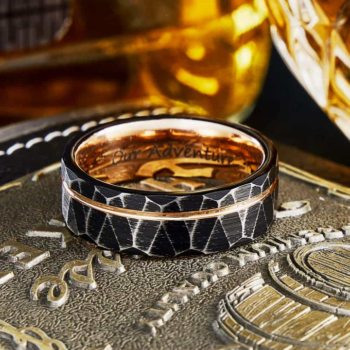 Gehamerde Wolfraam Carbide Ring Roségoud - Gloei
