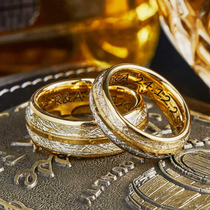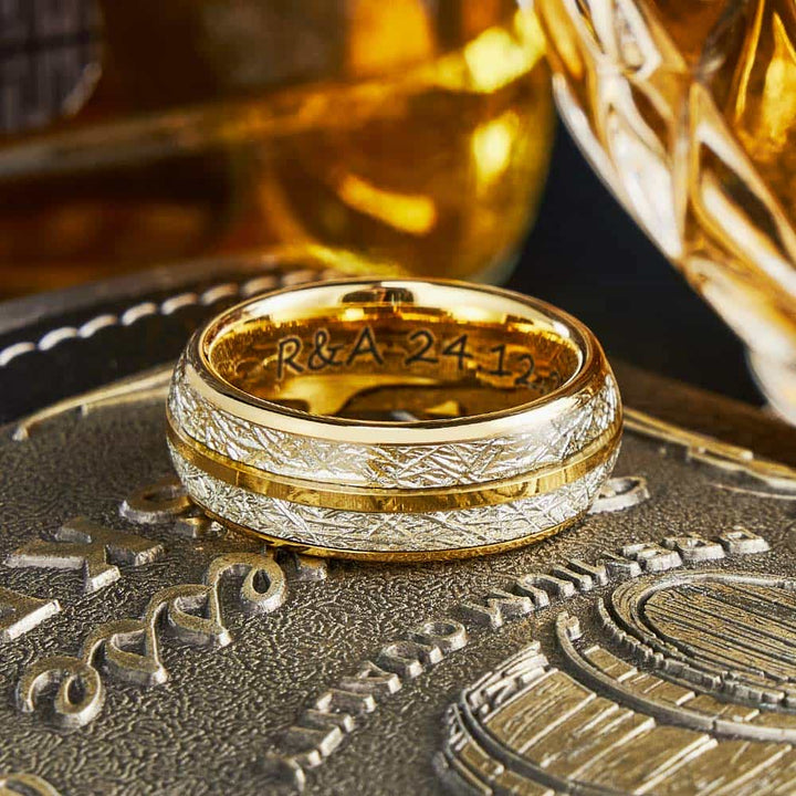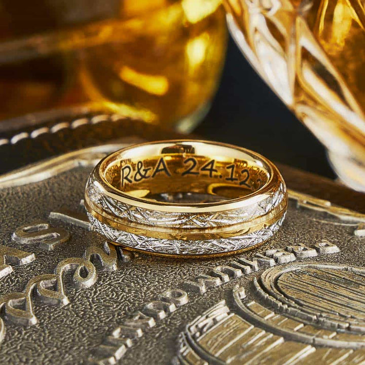 Wolfraam Ring Gouden met Meteorieten - Jaren Getuigen