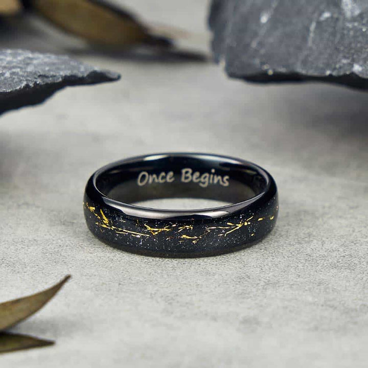 Wolfraam Ring Zwarte met Goudfolie - Tijdgraveur