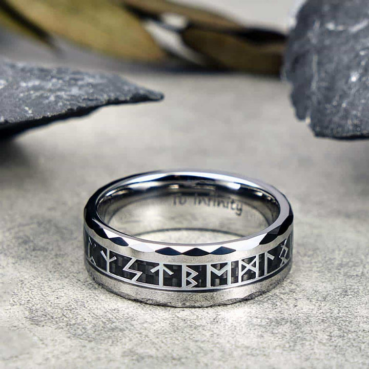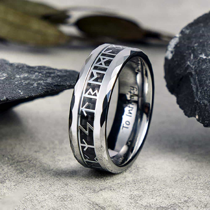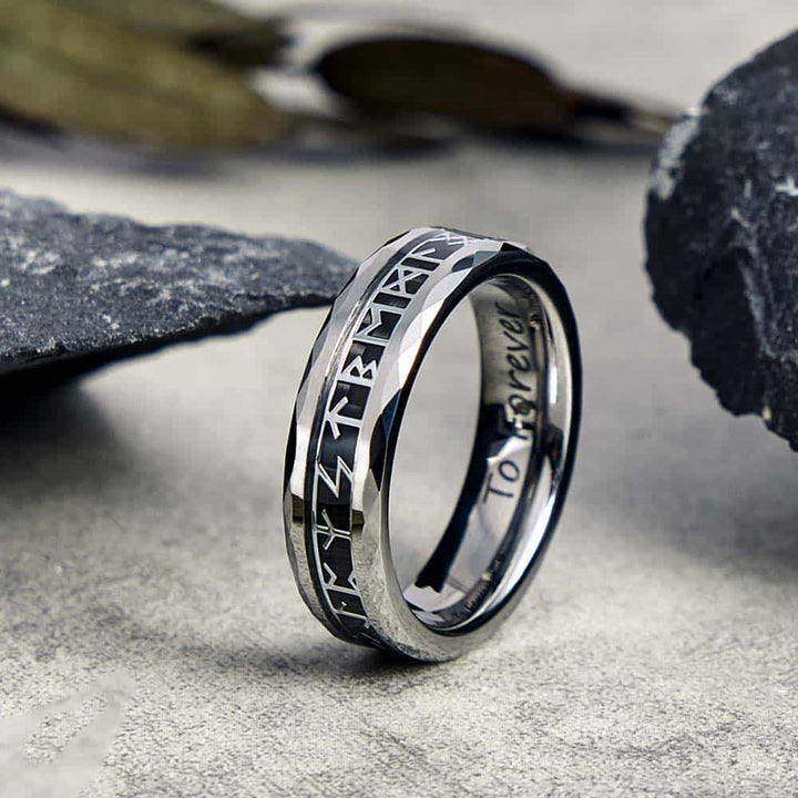 Facet Wolfraam Viking Ring Zilveren met Runen