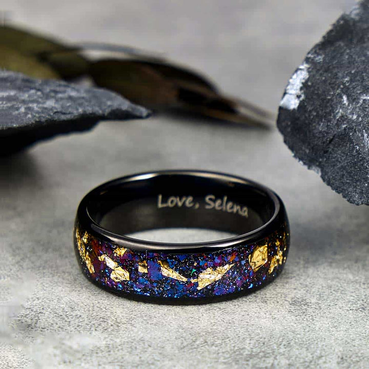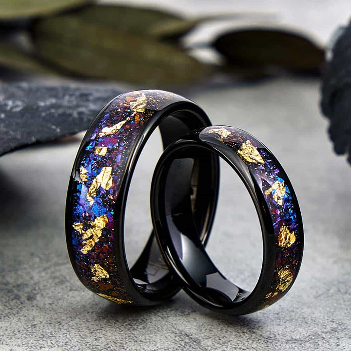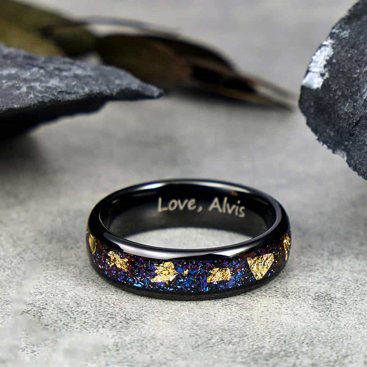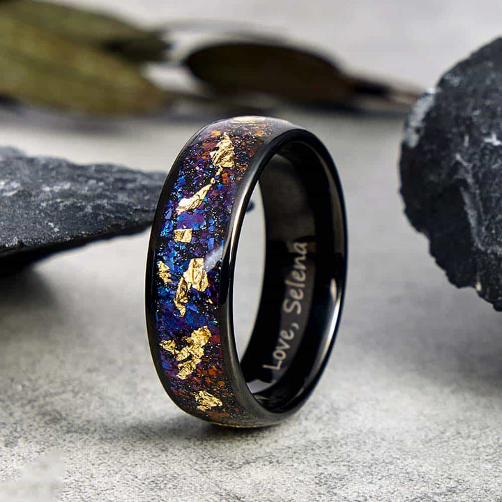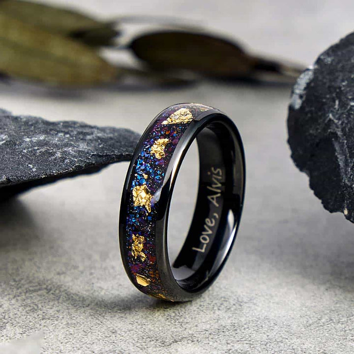 Zwart Paars Wolfraam Ring met Goudfolie - Arcane Pracht